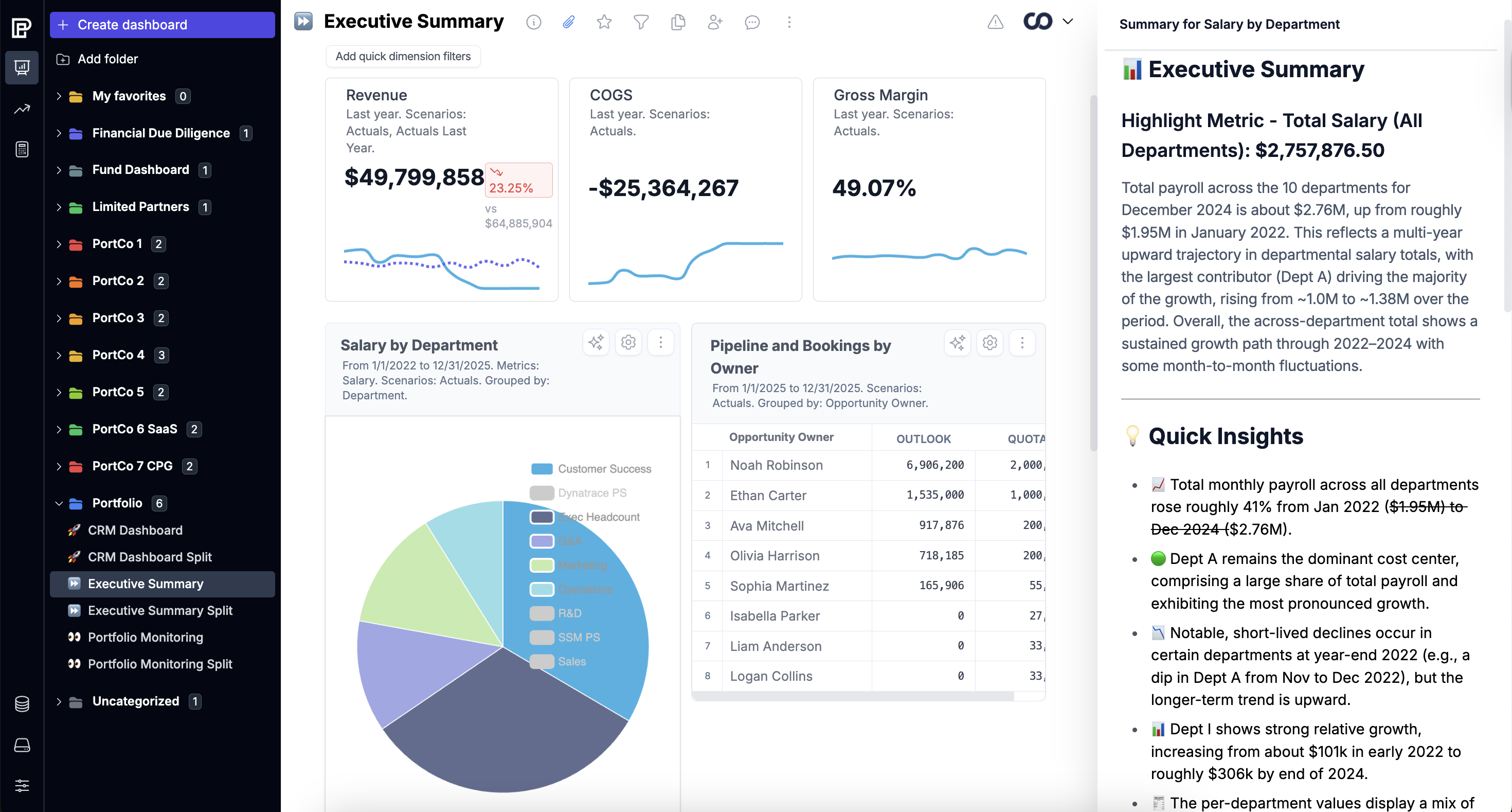 Obtain a comprehensive view of your portfolio company’s financial situation, create customized reports & dashboards, and surface insights in real time with your key stakeholders.