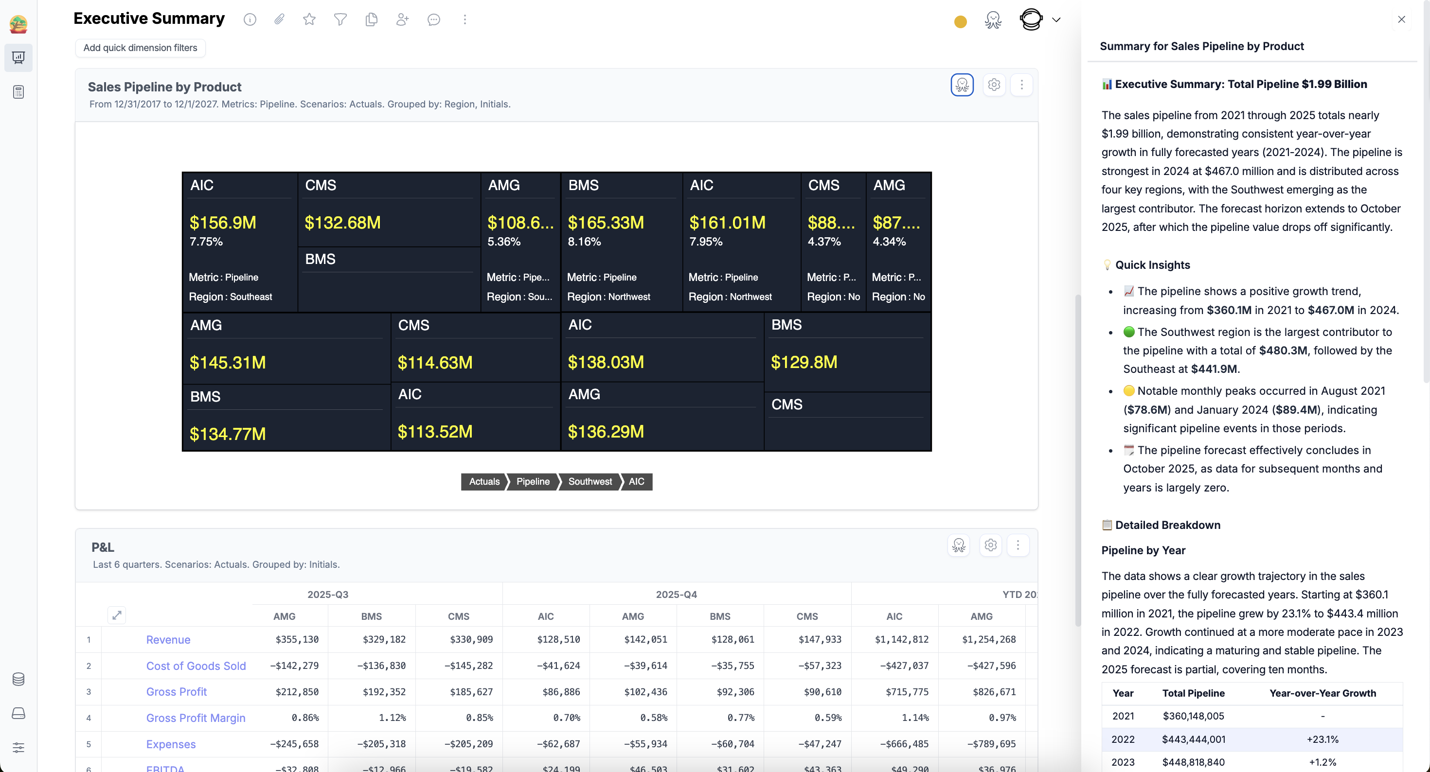 Instead of waiting for quarterly reviews, leaders get real-time deviations.
